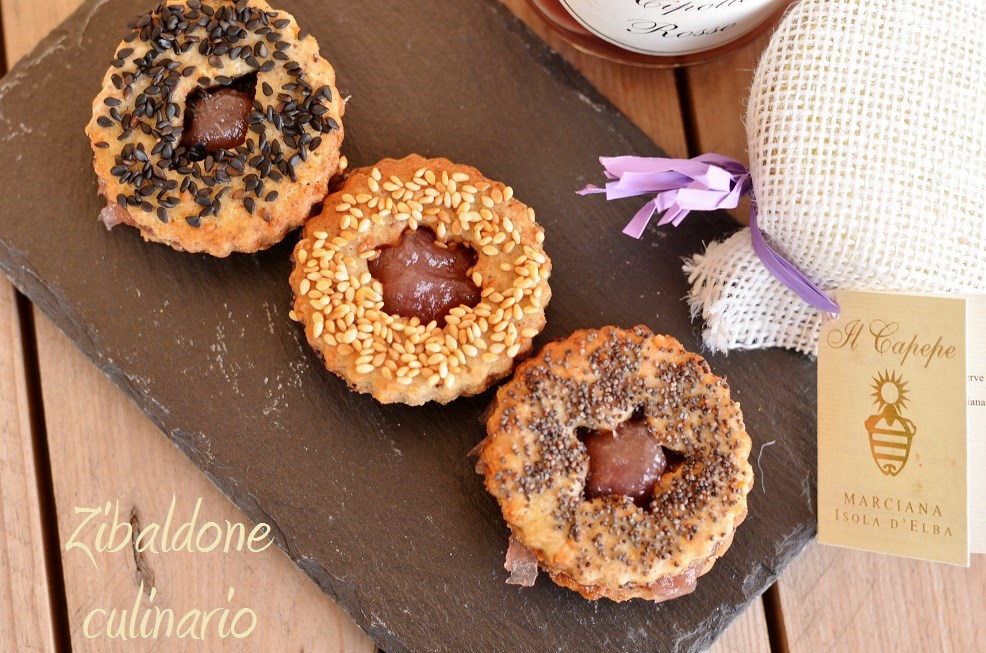 Biscotti al parmigiano farciti con confettura di cipolle rosse